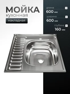 Мойка кухонная накладная нержавеющая сталь 60x60 левая
