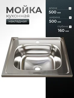 Мойка кухонная накладная нерж сталь 50x50 см квадрат