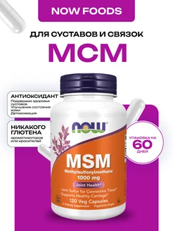 МСМ для суставов и связок, MSM 1000 mg, 120 капсул