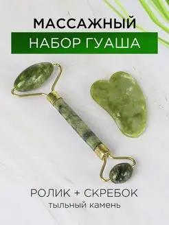 Массажный набор для лица и тела роллер и скребок Гуаша