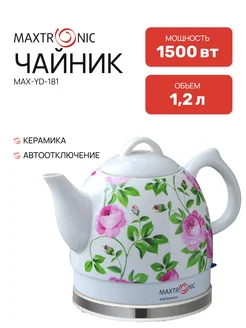 Чайник электрический MAX-YD-181 Розовая роза, 1.2л, 1500 Вт