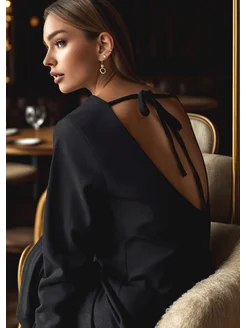 Платье миди черное с открытой спиной с длинными рукавами