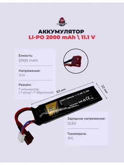 Аккумулятор Li-Po 2000mAh 11.1V, T-plug