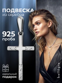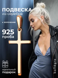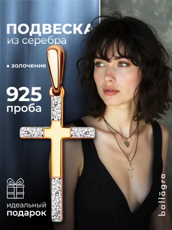 Декоративный серебряный с позолотой крестик 925 подвеска
