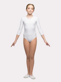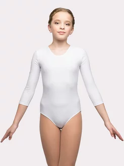 Купальник гимнастический белый с рукавом 3 4 хлопок