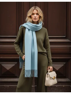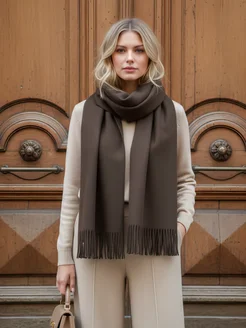 Шарф зимний шерсть кашемир однотонный осень и зима