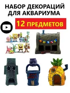 Набор декораций для аквариума "Мир Спанч Боба" 12 предметов