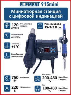 Паяльная станция ELEMENT 915 Mini (фен+паяльник)