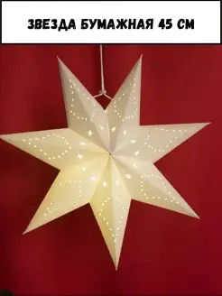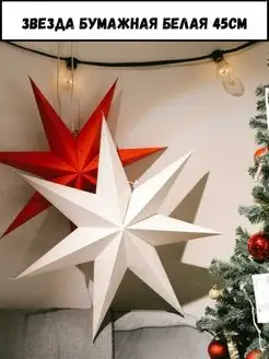 Звезда бумажная Объемная Новогодняя 45см Декор