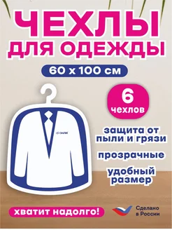 Чехлы для одежды полиэтиленовые для хранения вещей 6 шт