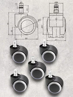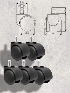 Колесо (ролики) для офисного кресла 5 шт