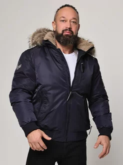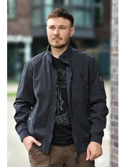 Бомбер Ветровка мужская на резинке хлопок синяя