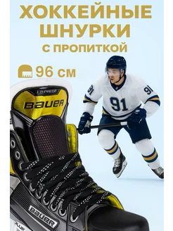 Шнурки чёрные хоккейные с пропиткой 96 см