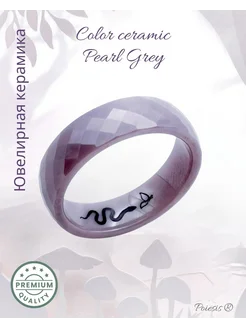 Керамическое кольцо серое с гравировкой