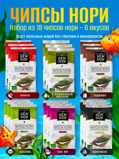 Чипсы нори 18 штук 6 вкусов по 3 пачки
