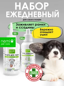Жидкий гель пластырь от ран и пудра для чистки ушей собак
