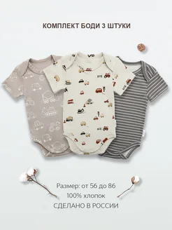 Боди для новорожденных с коротким рукавом 3шт Машинки