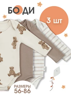 Боди для новорожденных с длинным рукавом 3шт Мишки
