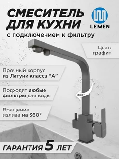 Смеситель для кухни с фильтром серый
