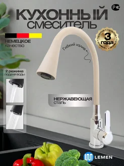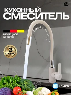 Смеситель для кухни с гибким изливом бежевый
