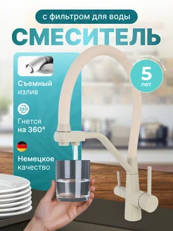 Смеситель для кухни с фильтром бежевый