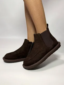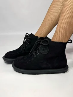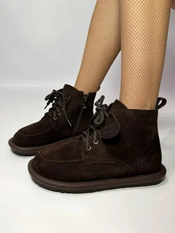 Ботинки демисезонные со шнурками и замком натуральная замша