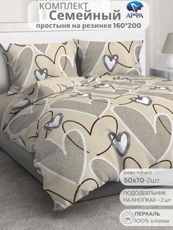 Постельное белье Семейное на резинке, перкаль, 70*70 см
