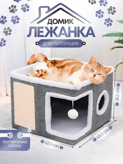Домик для кошки с когтеточкой большой и мягкий, лежанка