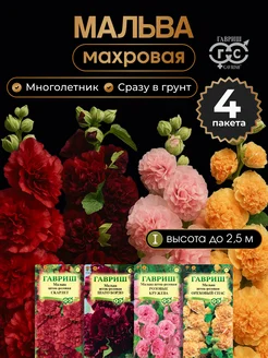 Семена мальва шток Роза махровая двулетняя набор 4 шт