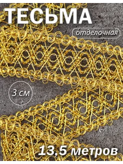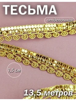 Тесьма отделочная декоративная с пайетками 15 мм золото