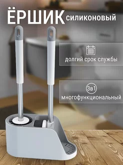 Ершик для унитаза силиконовый со щеткой 3 в 1