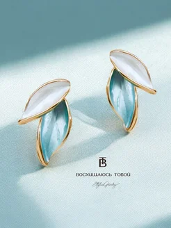 Серьги с эмалью голубые листья