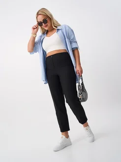 Брюки классические укороченные больших размеров на резинке