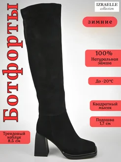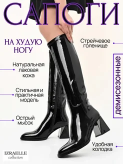 Сапоги демисезонные на каблуке ботфорты стрейчевые
