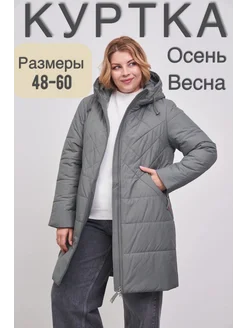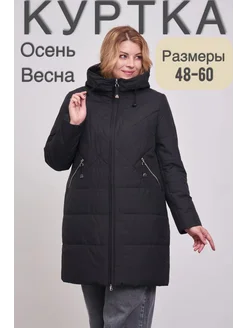 Куртка демисезонная больших размеров с капюшоном удлиненная