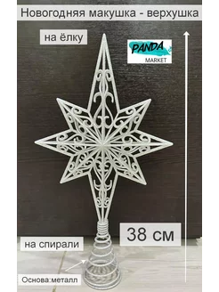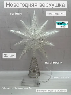 Новогодняя верхушка звезда -снежинка на спирали на елку,38