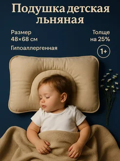 Подушка детская льняная 40х60 в кроватку