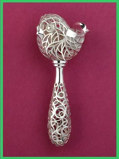 Серебряная погремушка Птичка на рождение крещение ребенка