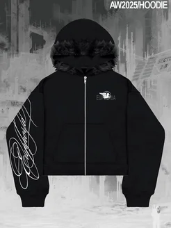 Зип худи зипка y2k с мехом на капюшоне кофта