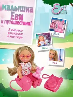 Кукла Еви фотоаппаратом и рюкзаком 12 см