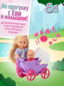 Кукла Еви с фиолетовой коляской и малышом на прогулке