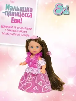 Кукла Еви-брюнетка в розовом платье и акс. д волос, 12см
