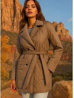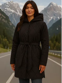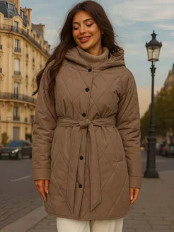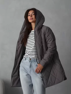 Куртка демисезонная удлиненная стеганая с капюшоном