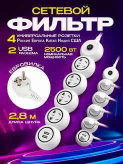 Сетевой фильтр c USB удлинитель 3, 8 м
