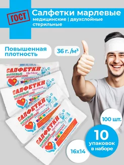 Салфетки марлевые медицинские двухслойные стерильные 16х14