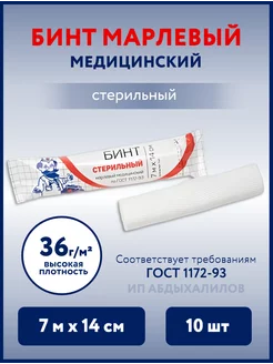 Бинт стерильный медицинский марлевый 7х14 20 штук