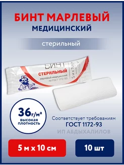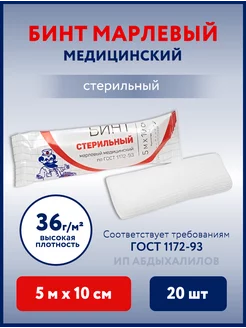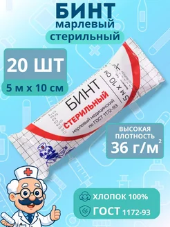 Бинт медицинский стерильный марлевый 5х10 (20 штук)