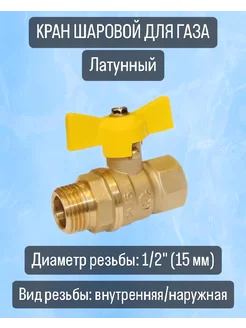 Кран газовый шаровой 1 2'' вн-нар бабочка