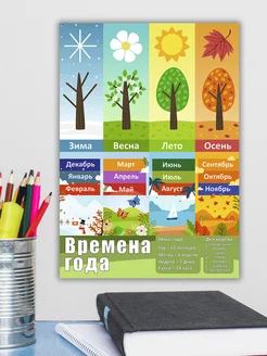 Плакат на стену обучающий для детей Времена года