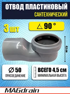 Отвод канализационный колено 90 градусов EL-50 3шт